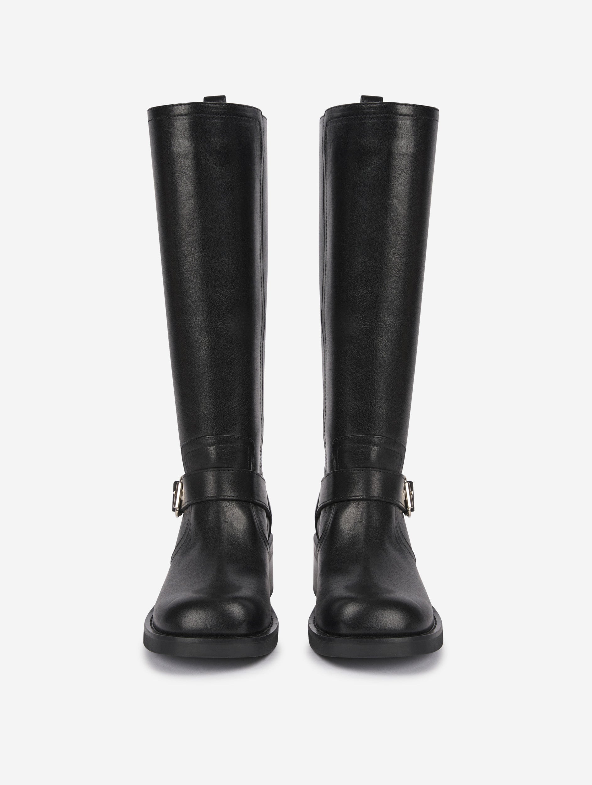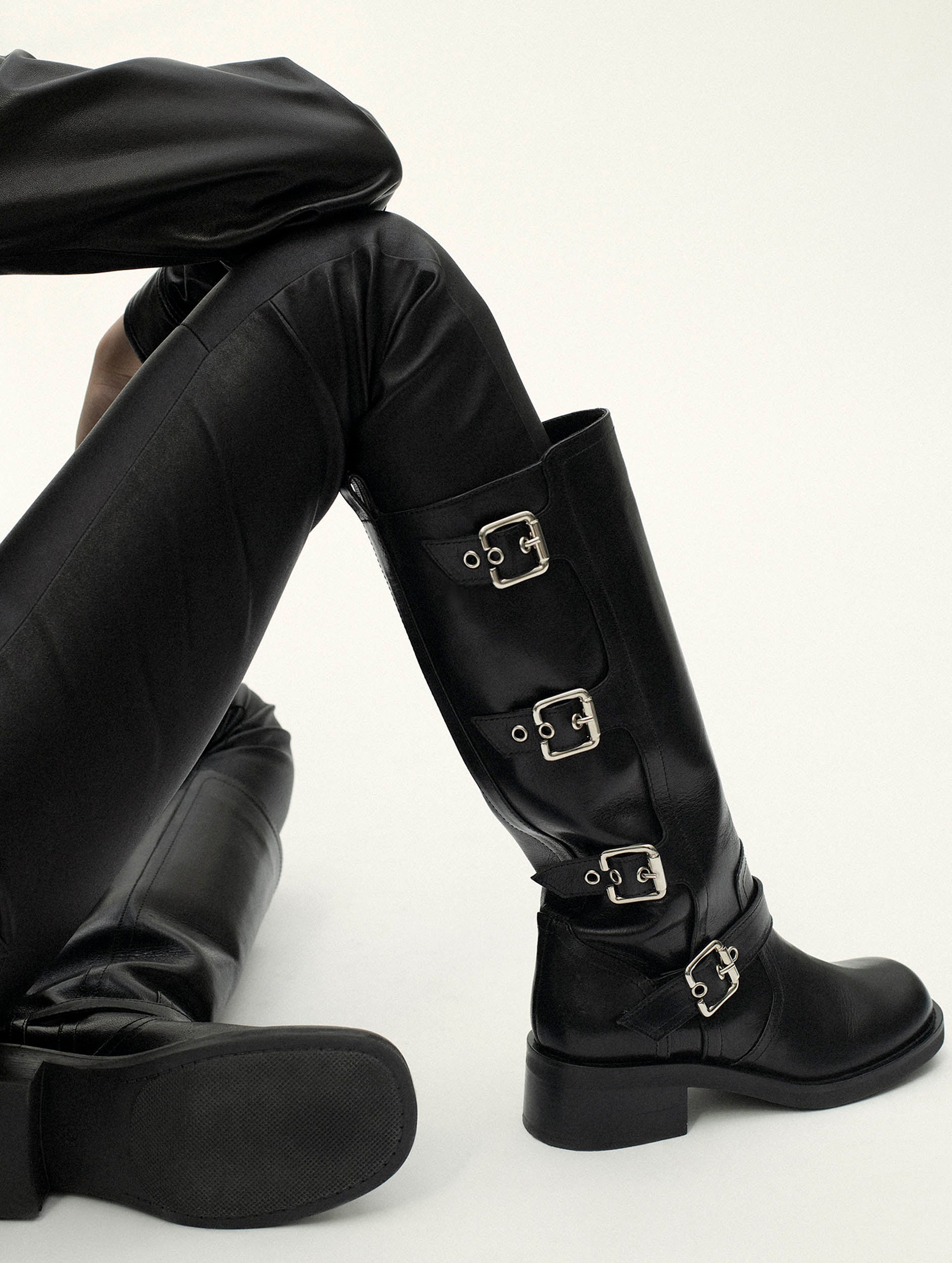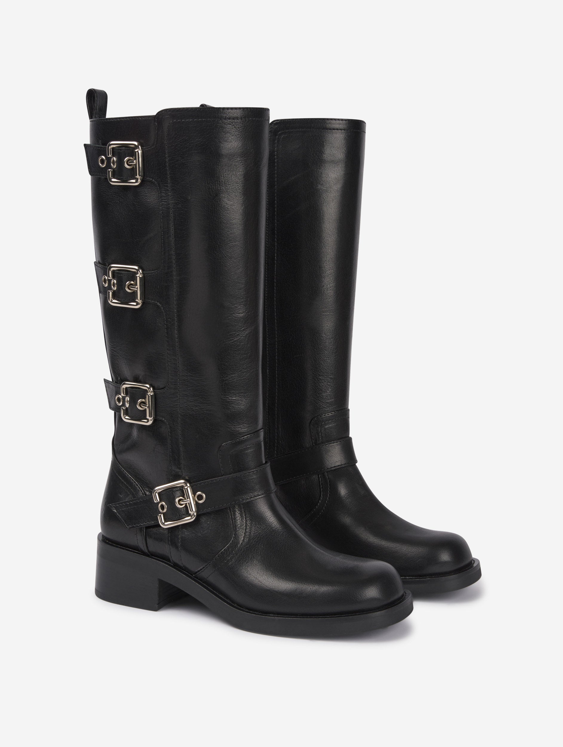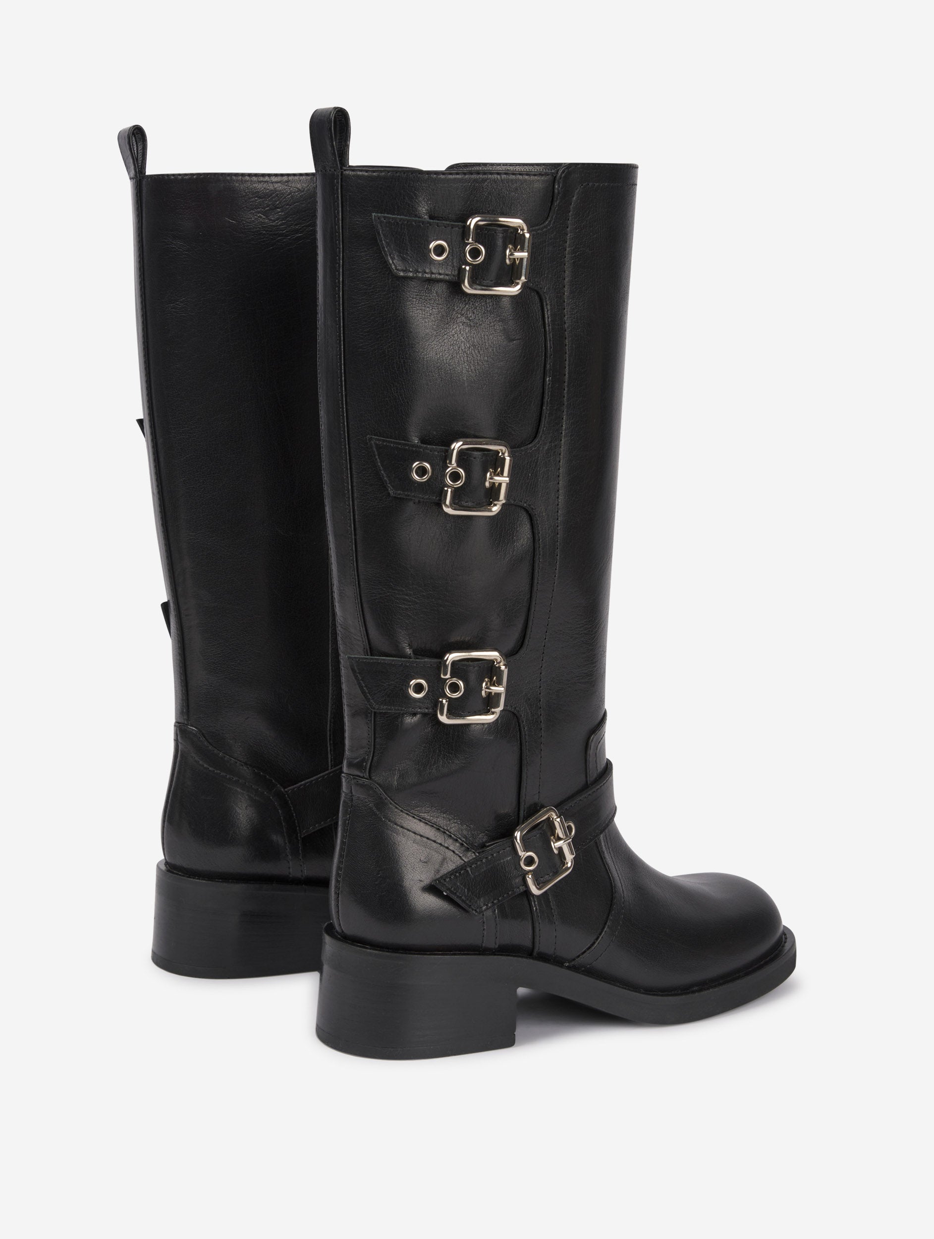 Multi-buckle biker boots in black leather