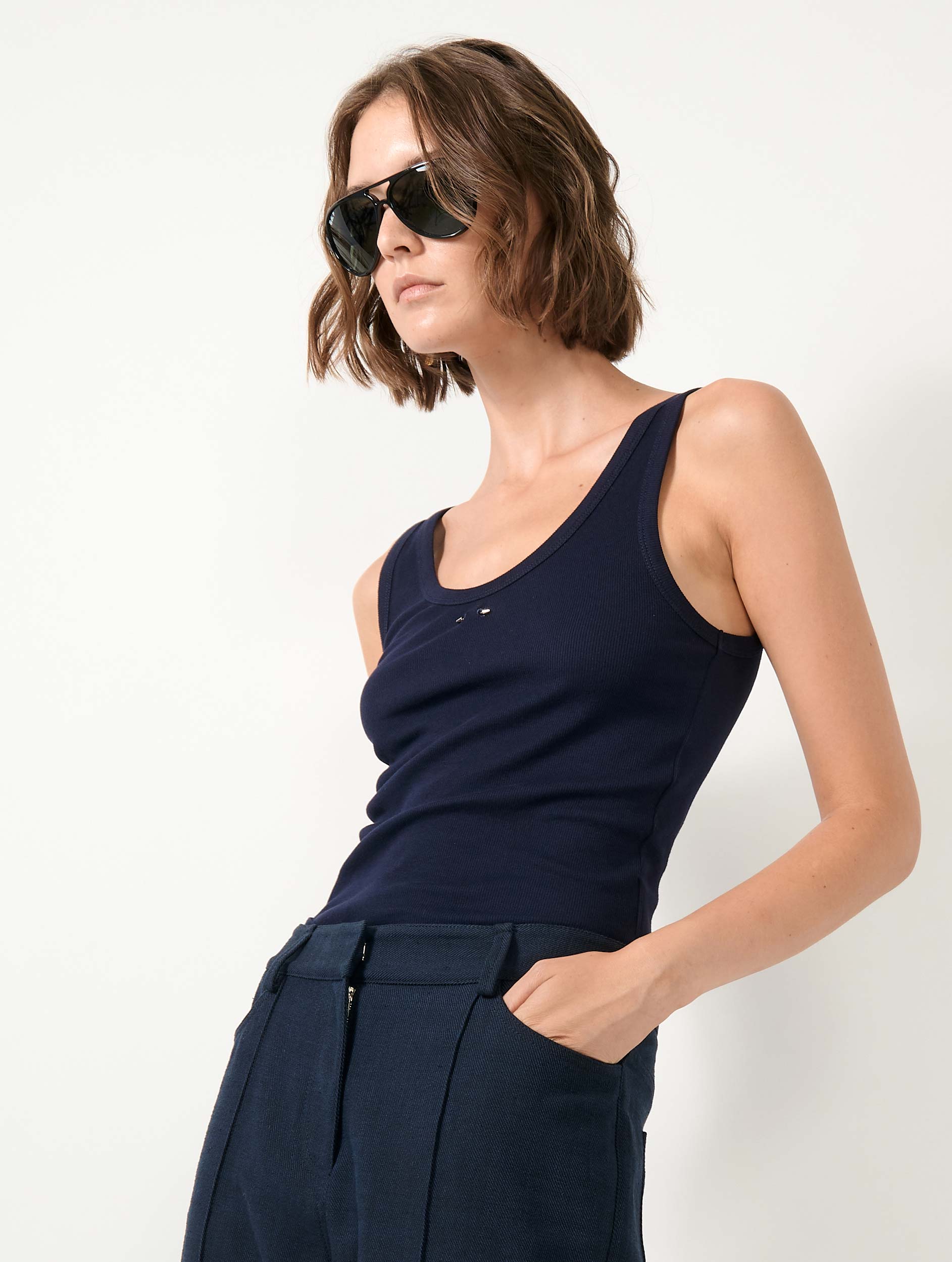 Navy ribbed jersey tank top
