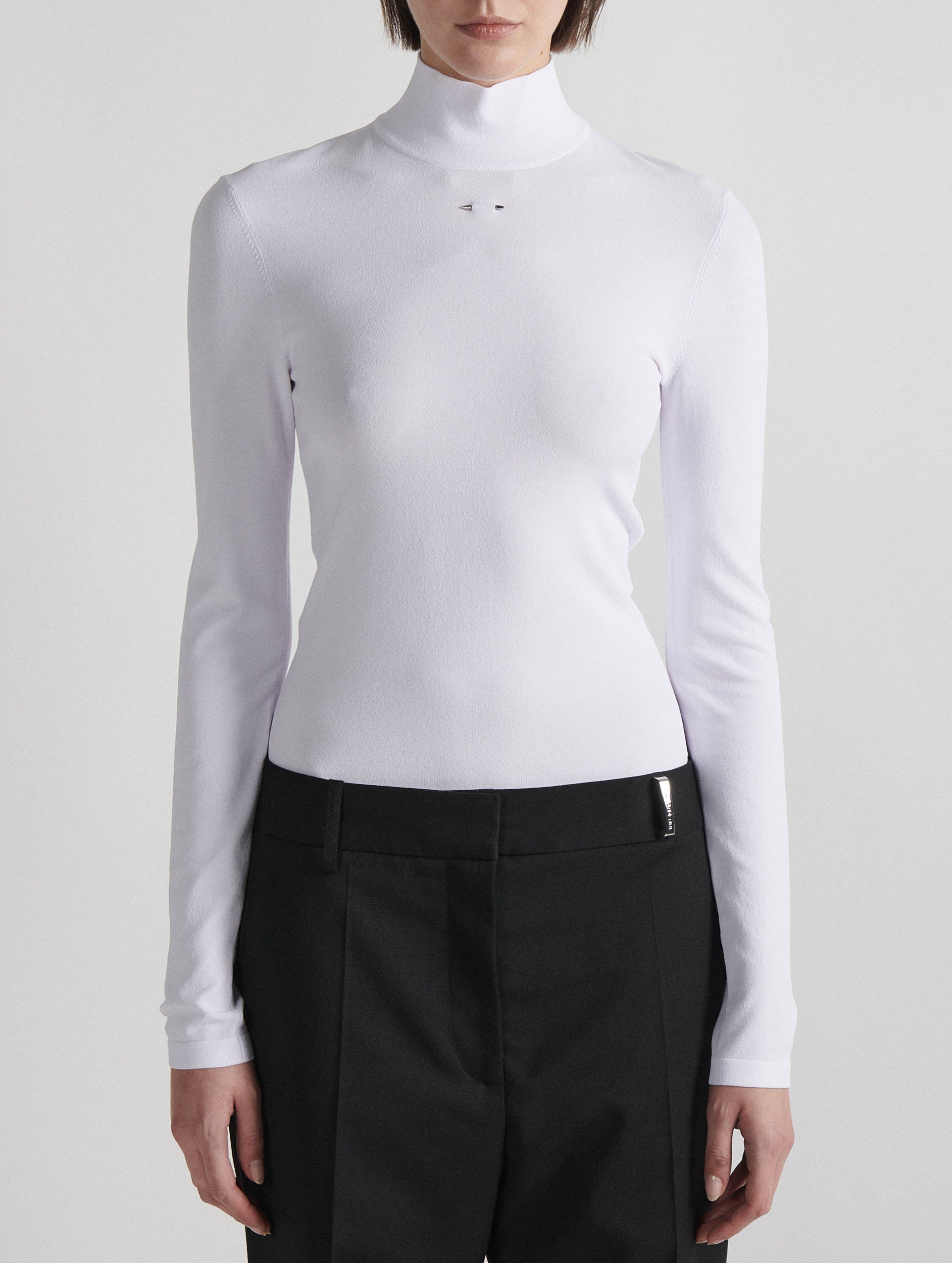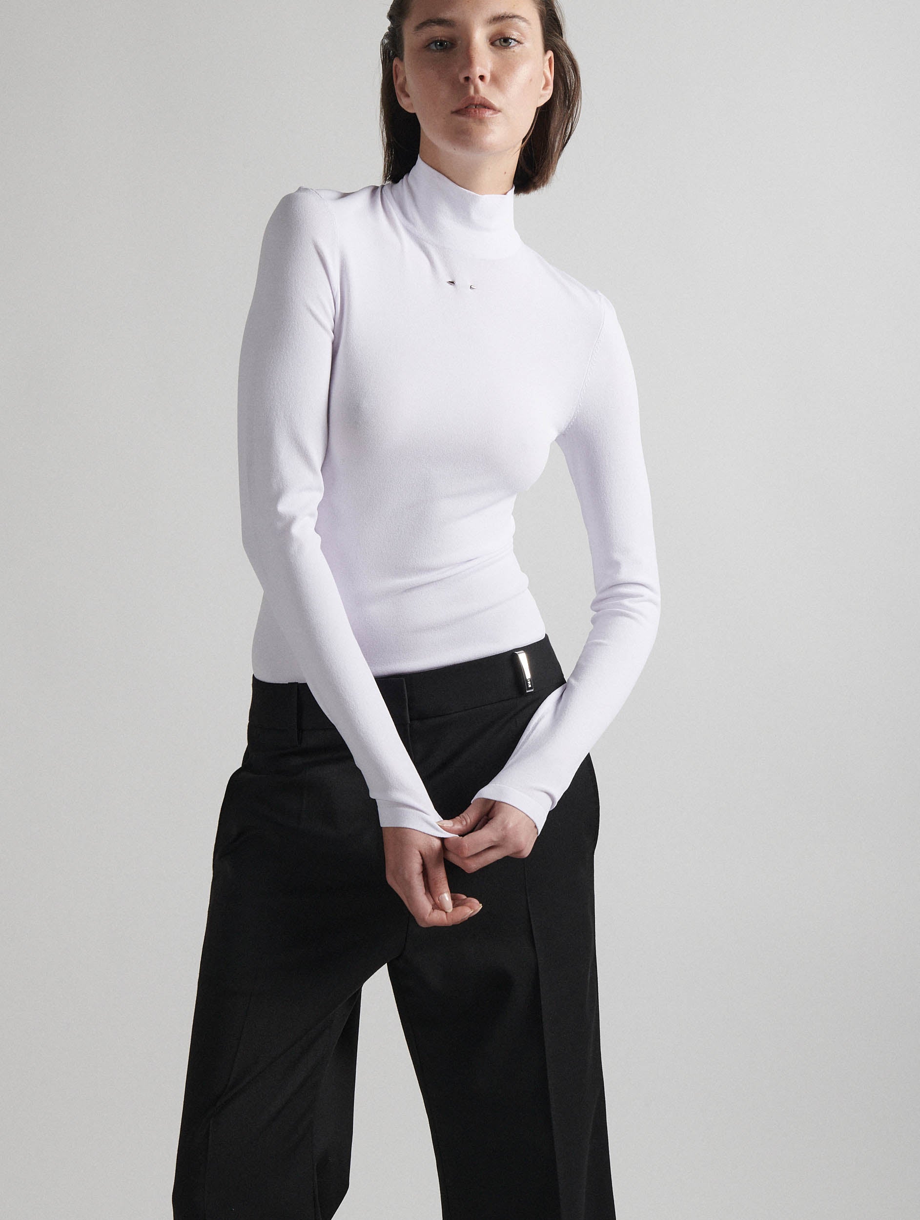 Crafted from a viscose blend, our soft and silky second-skin knit is perfect for layering. As the spring-summer season favors layering, Barbara Bui has designed this fine high-collar sweater to add a touch of color to all looks. Under a poplin shirt, a merino wool sweater, or a blazer, this small high-collar sweater will be your go-to. Its invisible back zip facilitates wear, while its body-hugging knit ensures a flattering fit.