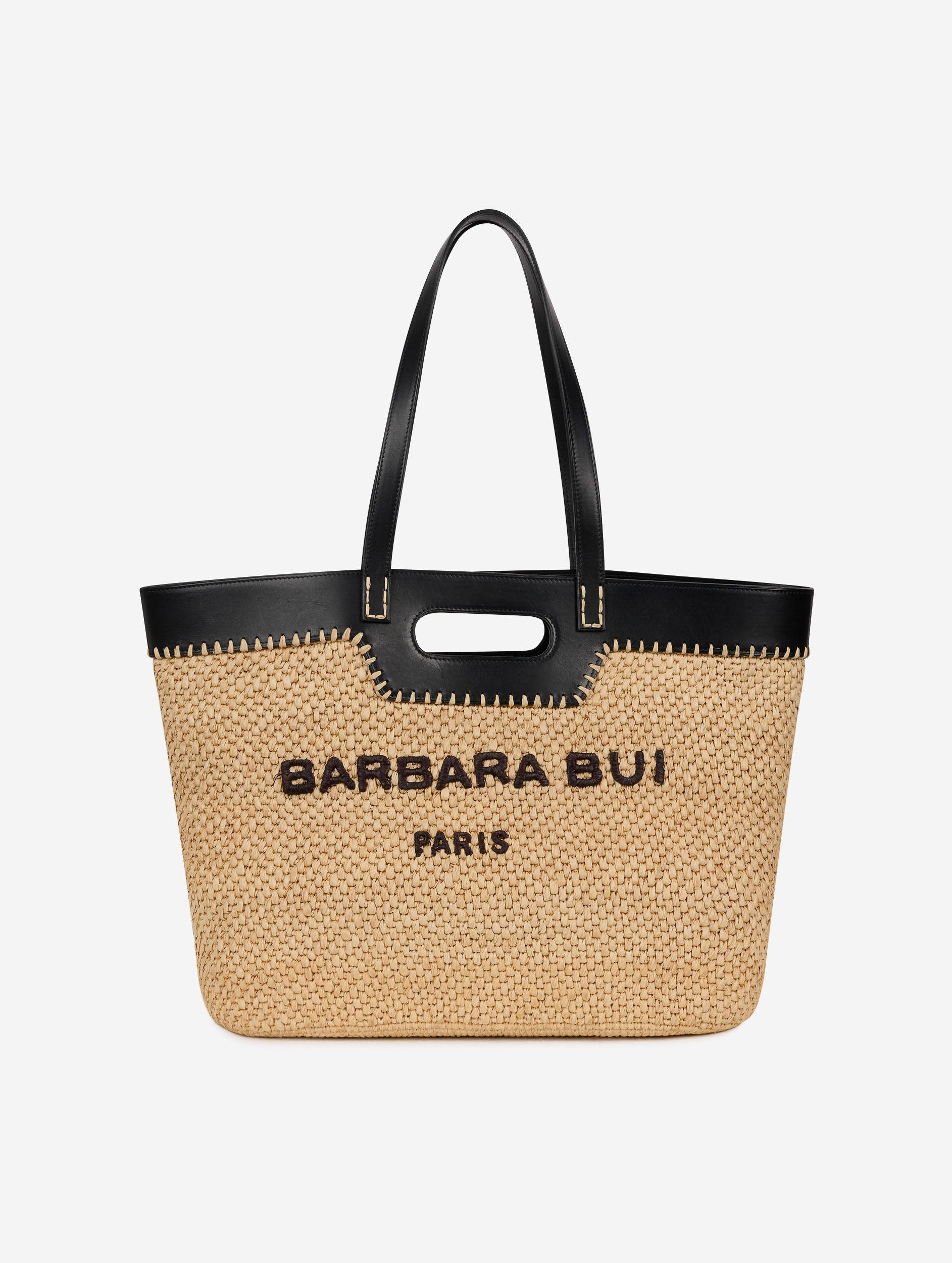 Shopping bag in natural raffia and black leatherSKU:F6820PNT_0210