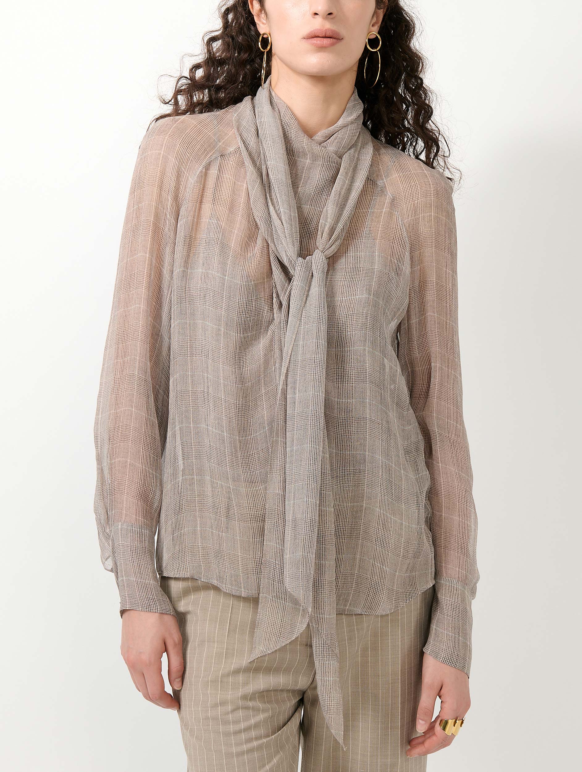 Sand Prince of Wales check silk georgette blouseSKU:H1424HRL_41
