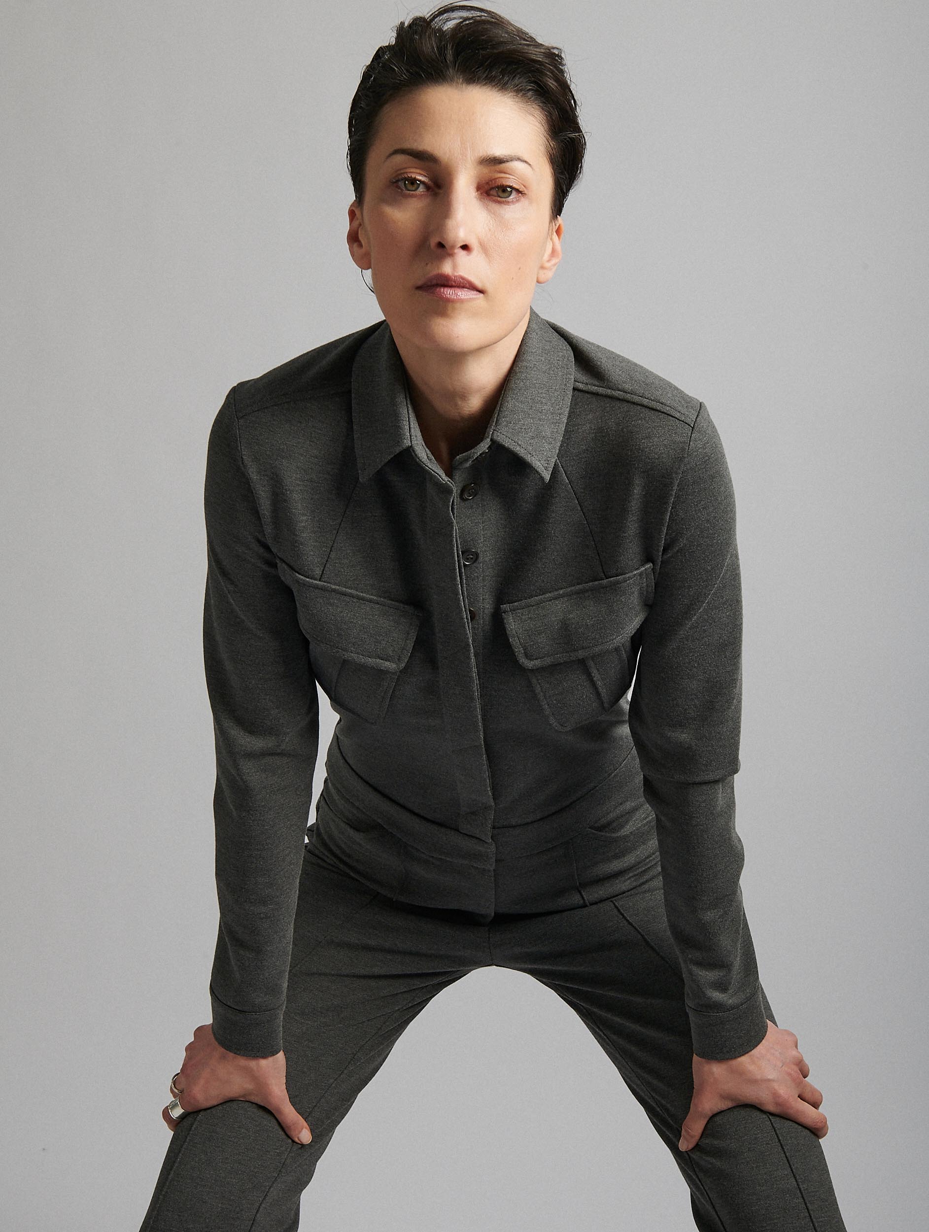 Grey jumpsuit in milano jersey