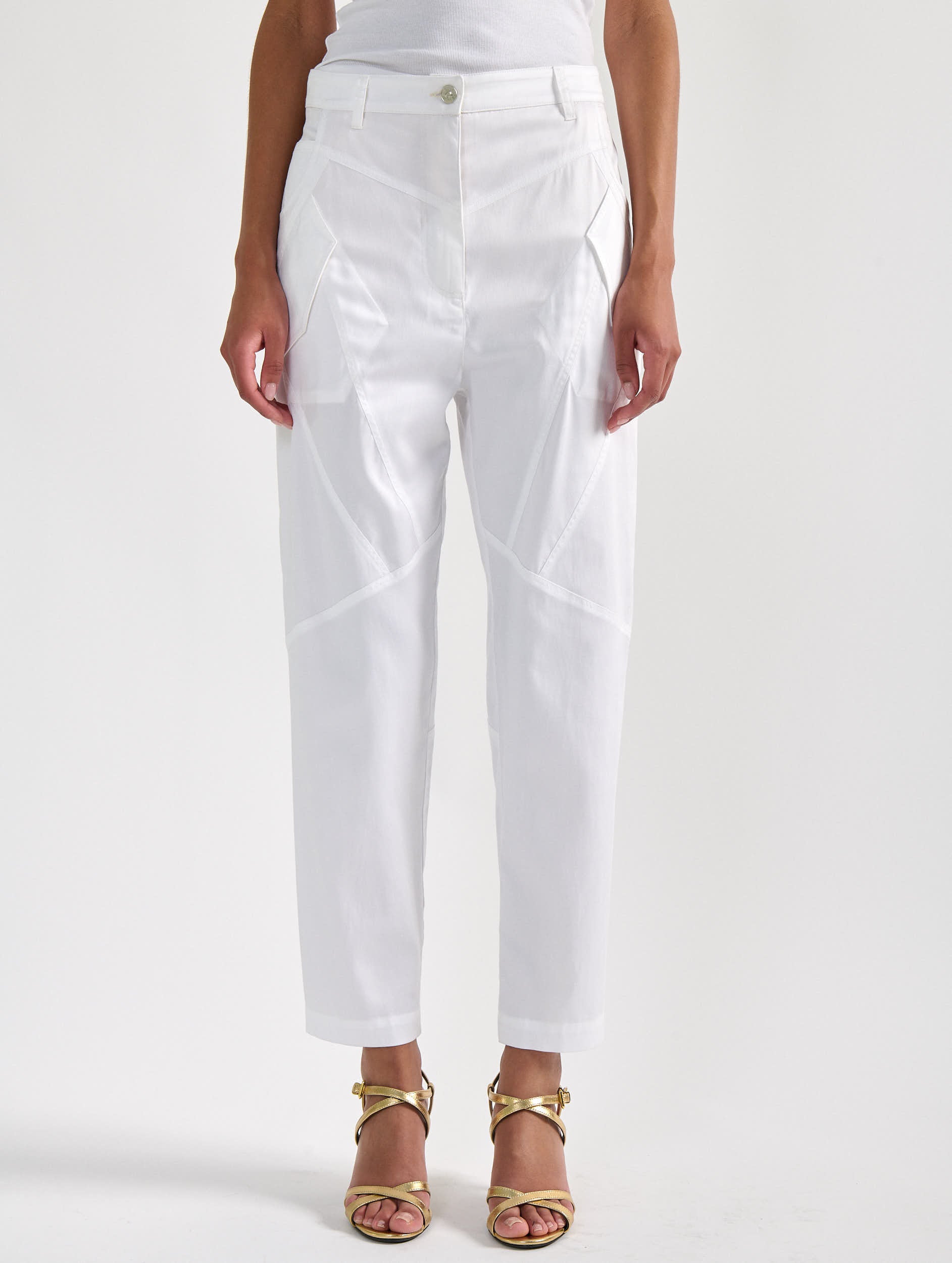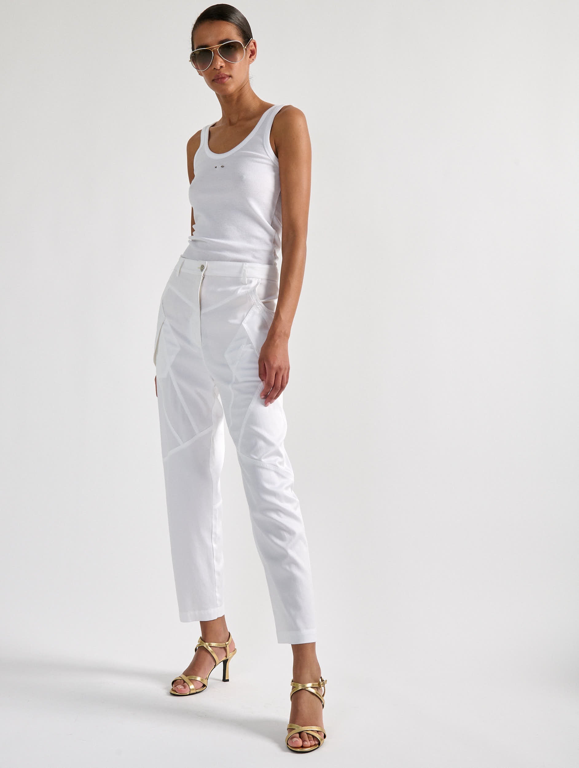 White mercerised satin cargo trousersSKU:F1648FEH_01