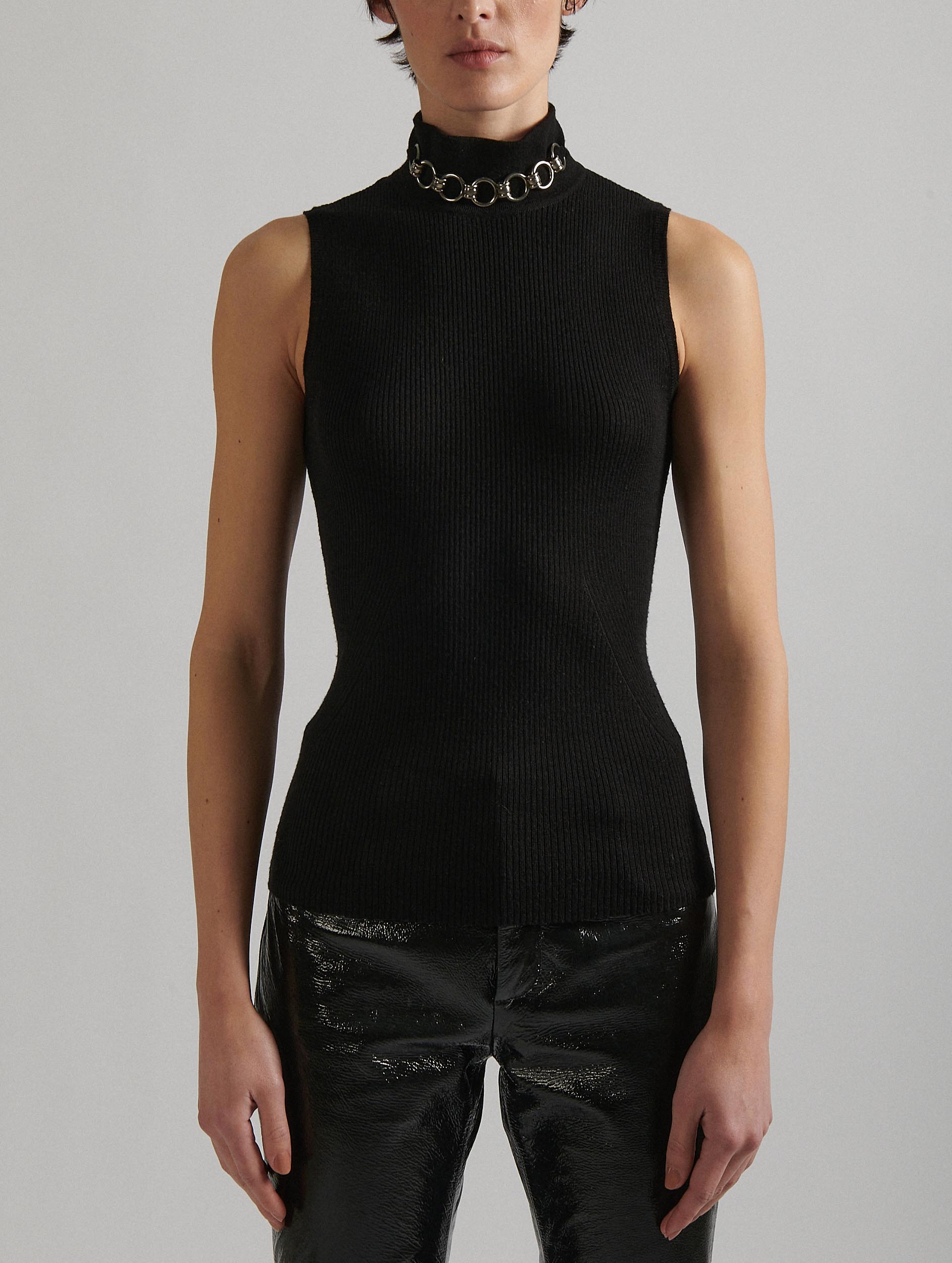 Sleeveless black turtleneck jewel neck sweaterSKU:E4200XXA_10