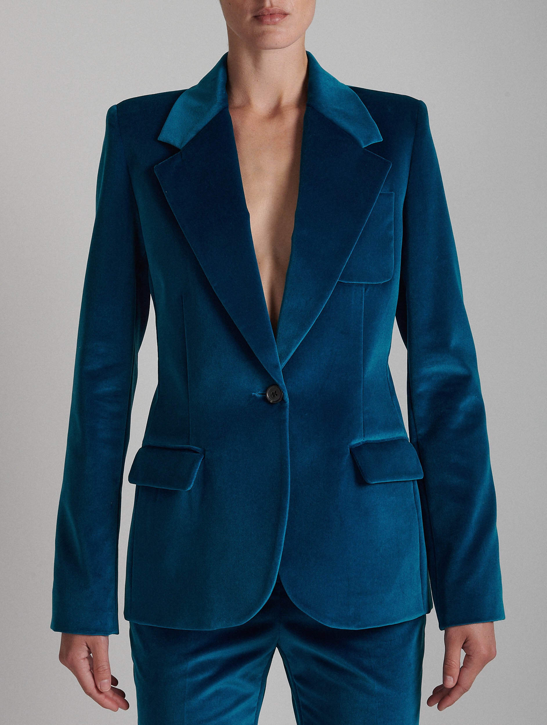 Fitted blue velvet jacketSKU:E1204EHK_25