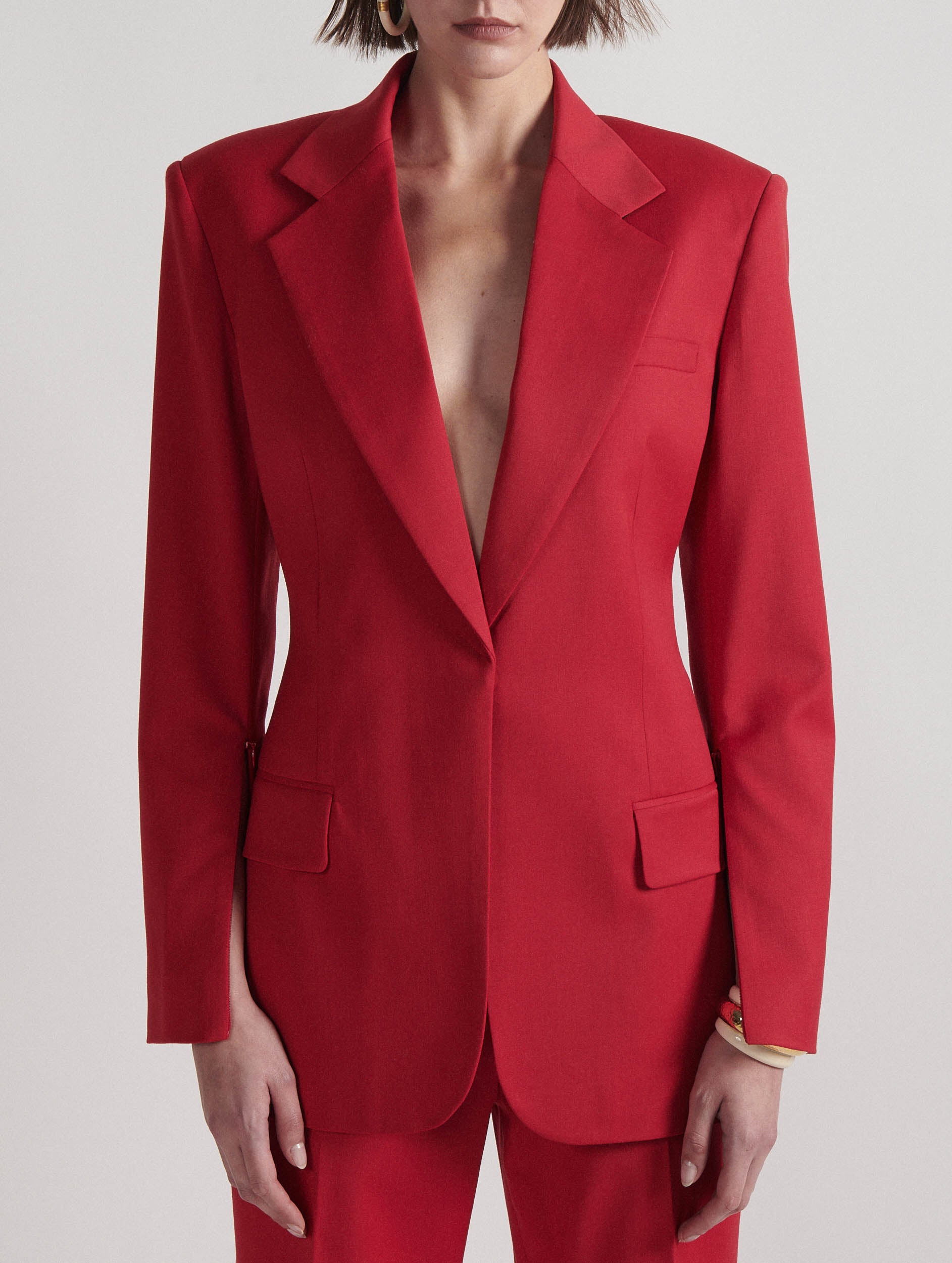 Red stretch wool gabardine suit jacketSKU:E1210DEG_23