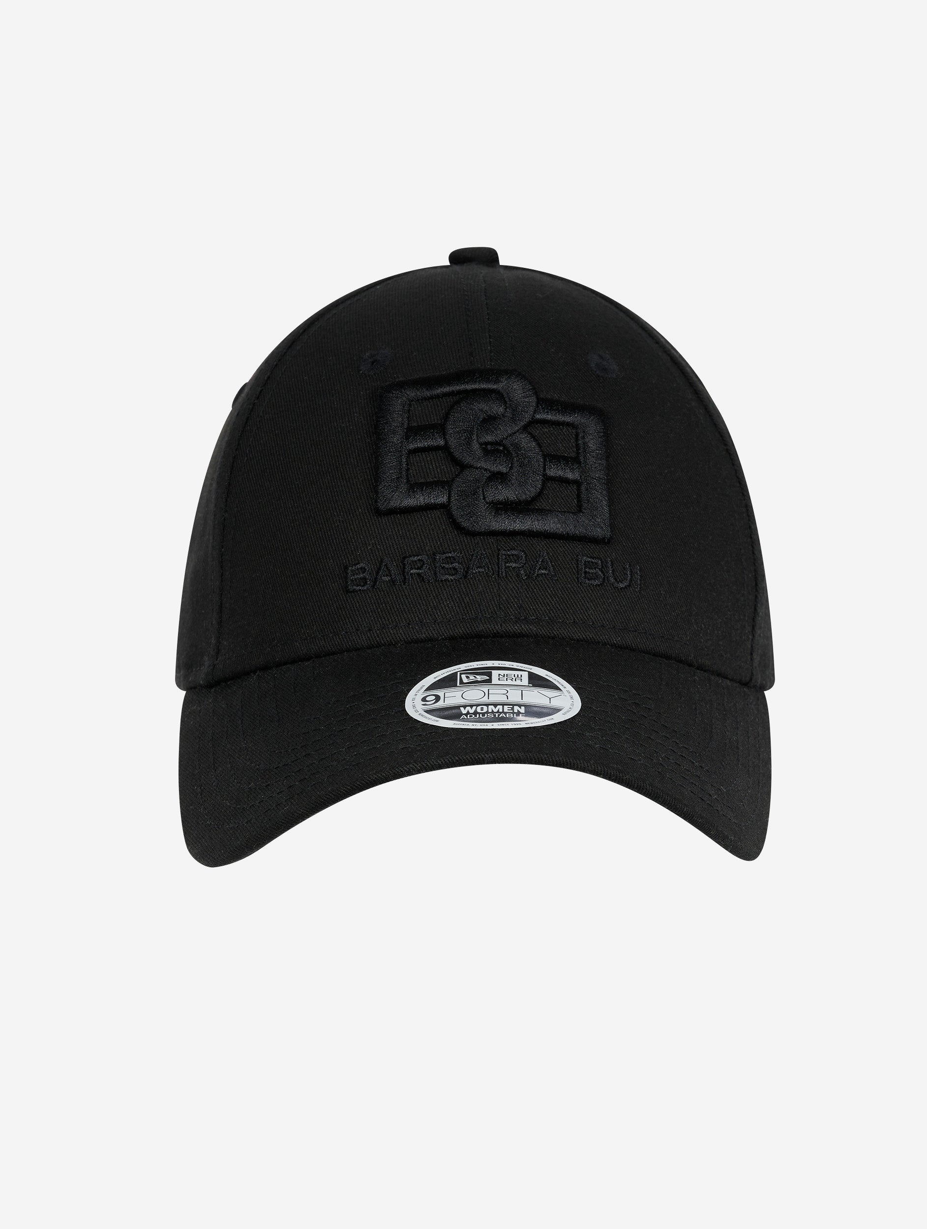 Ideal sport-chic accessory to perfect a daily outfit, the cap is reimagined by Barbara Bui in collaboration with New Era. This model in black cotton canvas is embellished with tone-on-tone embroidered logo. On the back, Barbara Bui's signature silver-metal piercing. Adjustable in size, this cap will accompany you from the city to the beach to confer a cool touch to all your outfits.