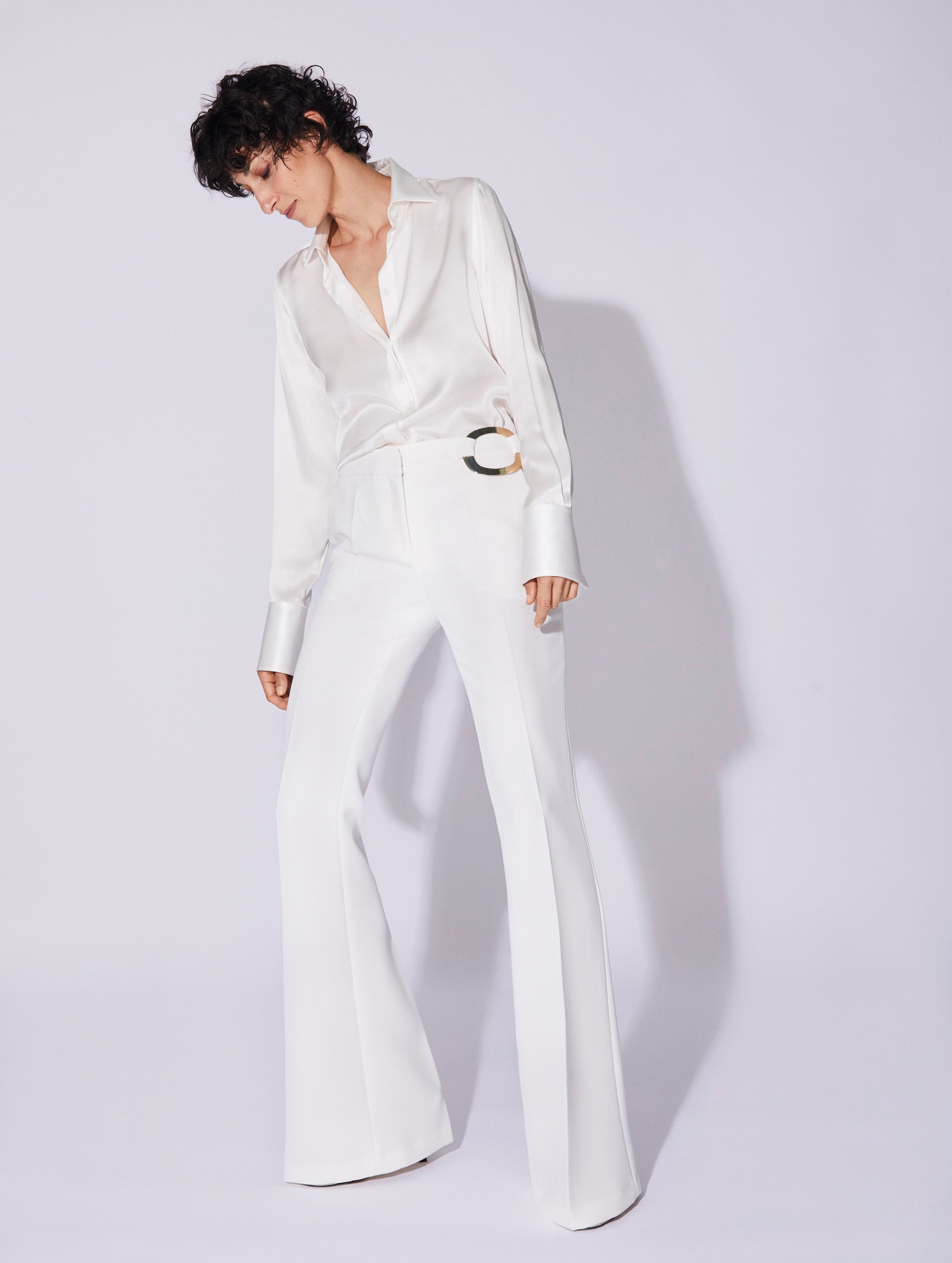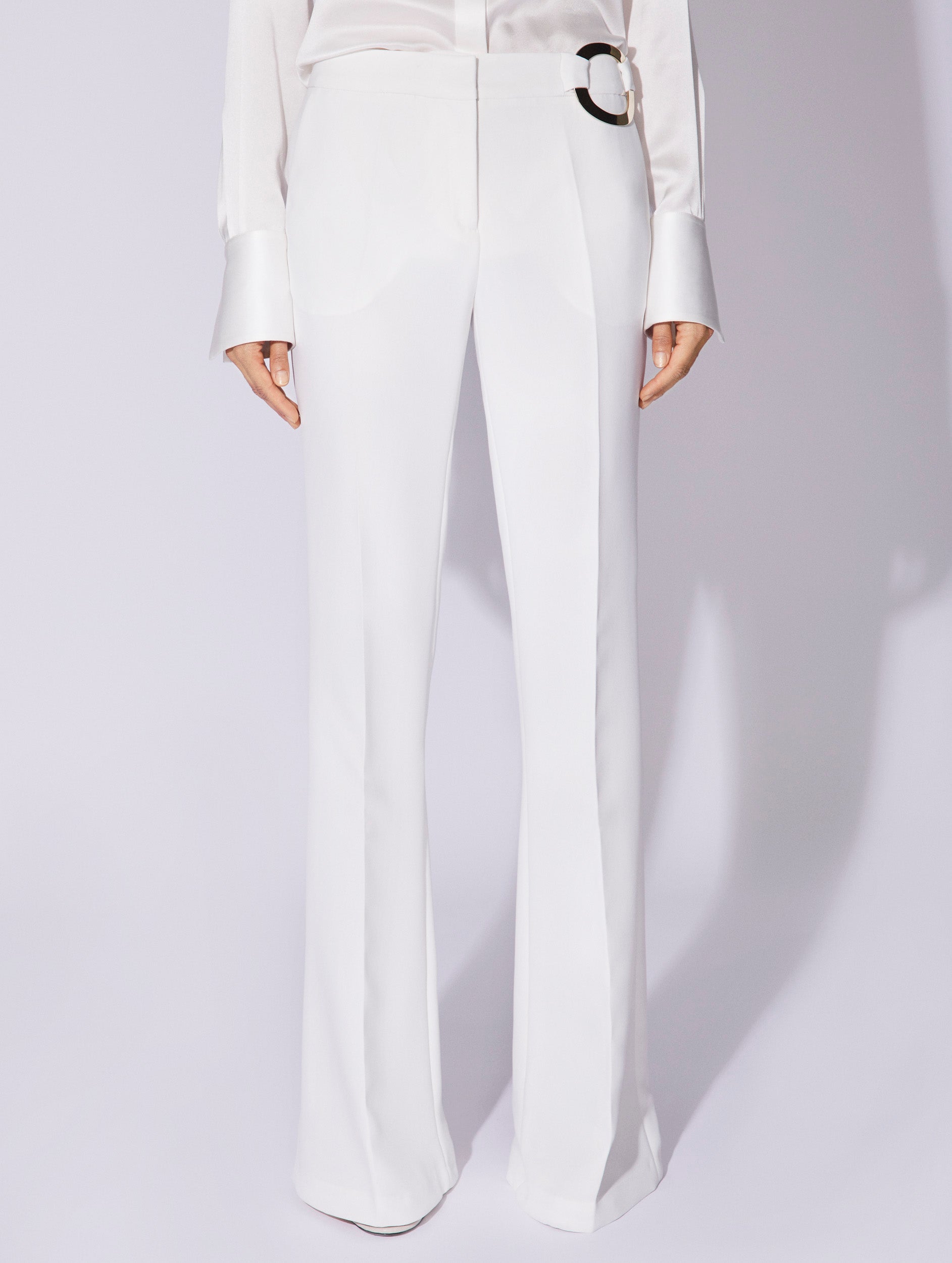 White crepe flared trousers with buckleSKU:D1615EEA_11