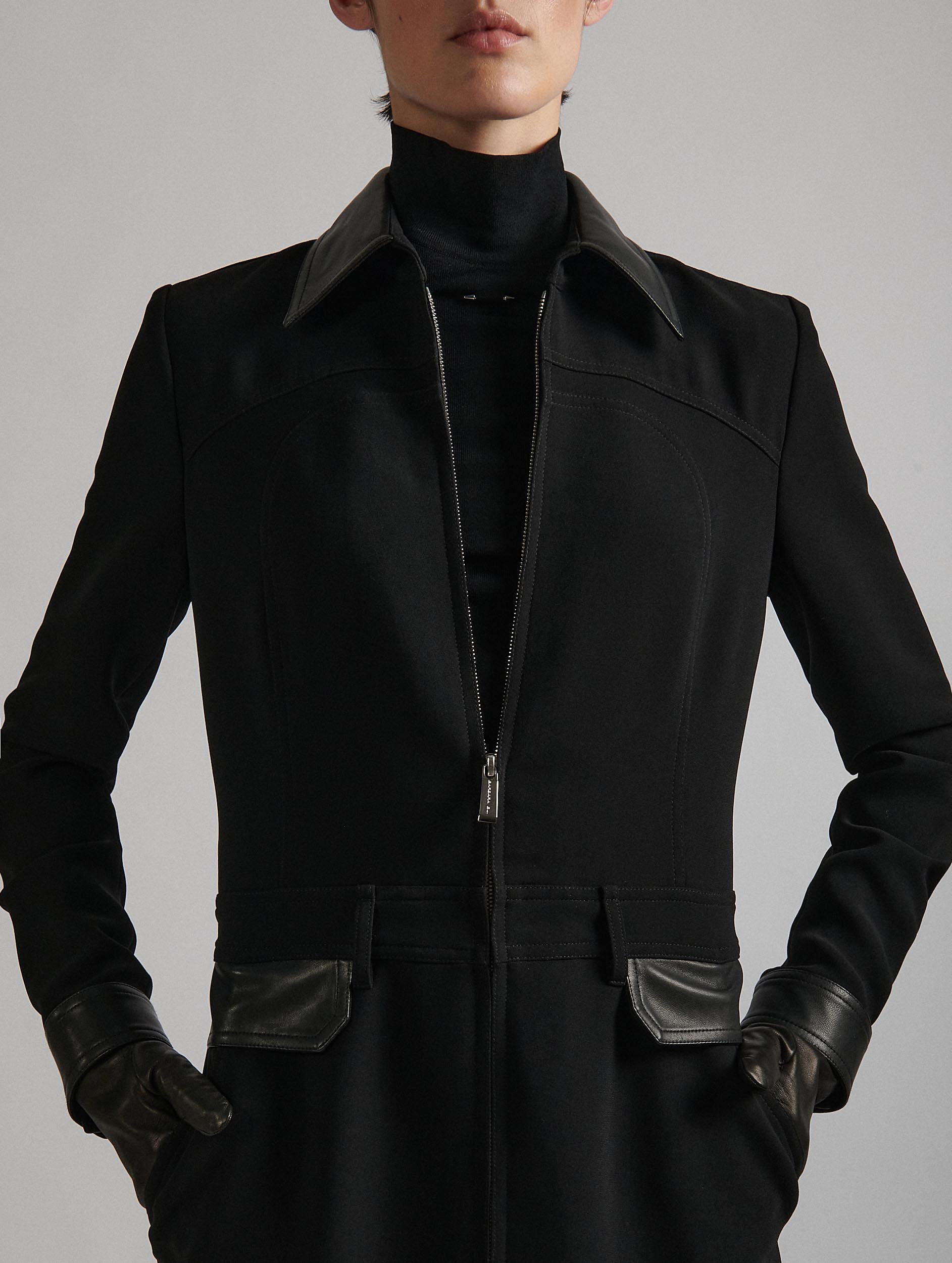 Day dress in black crepe with leather detailsSKU:E1319EEA_1010