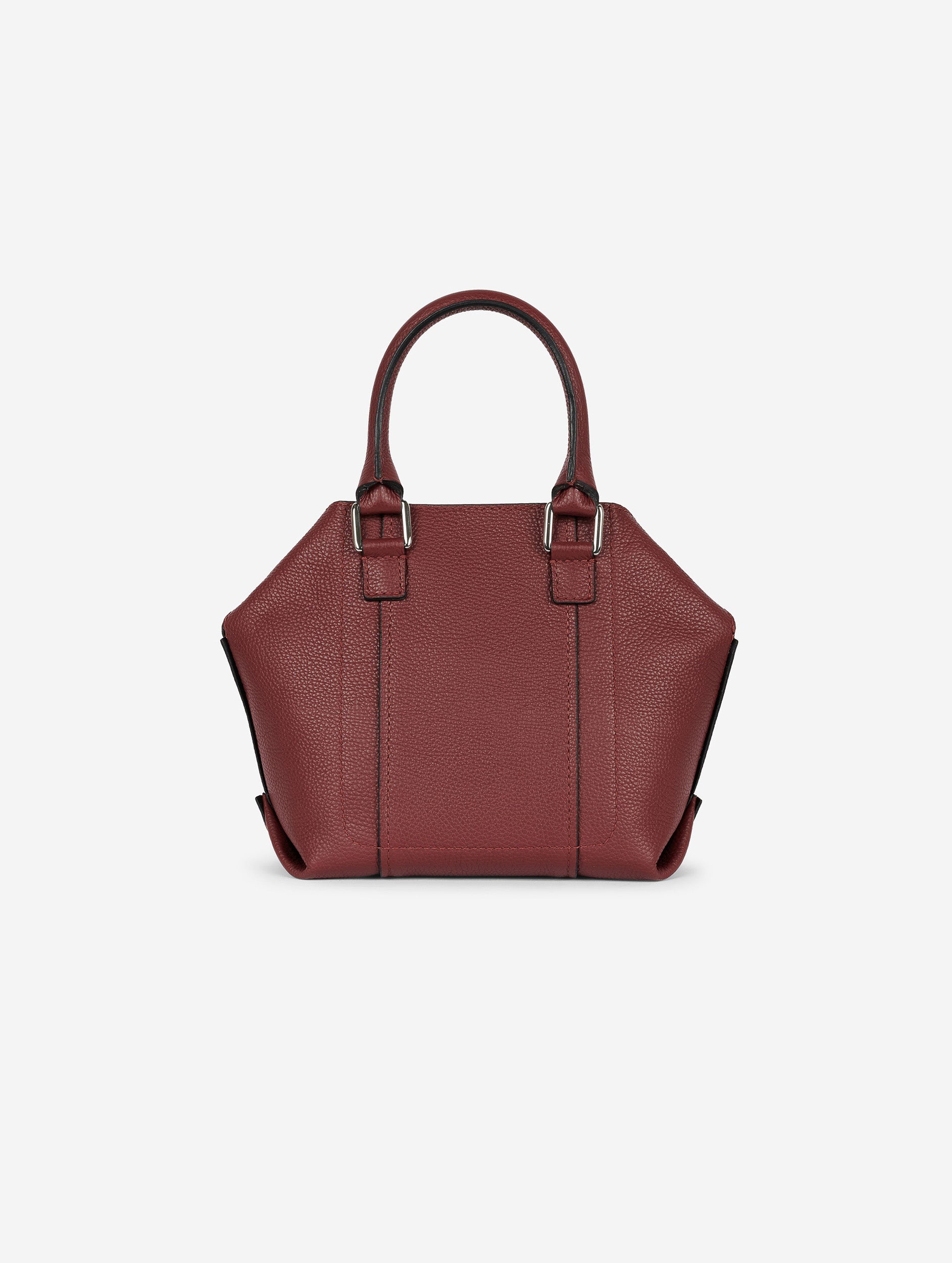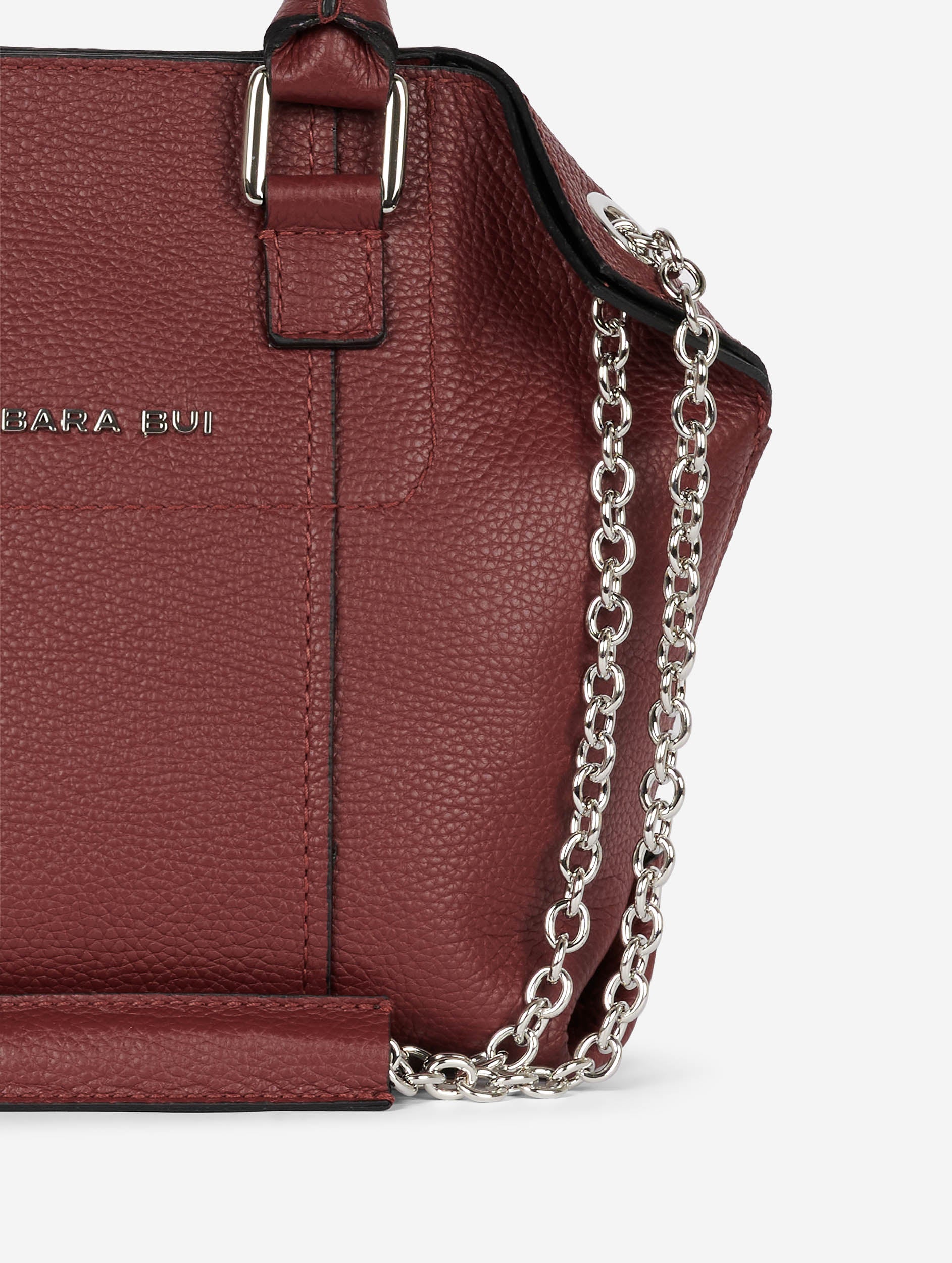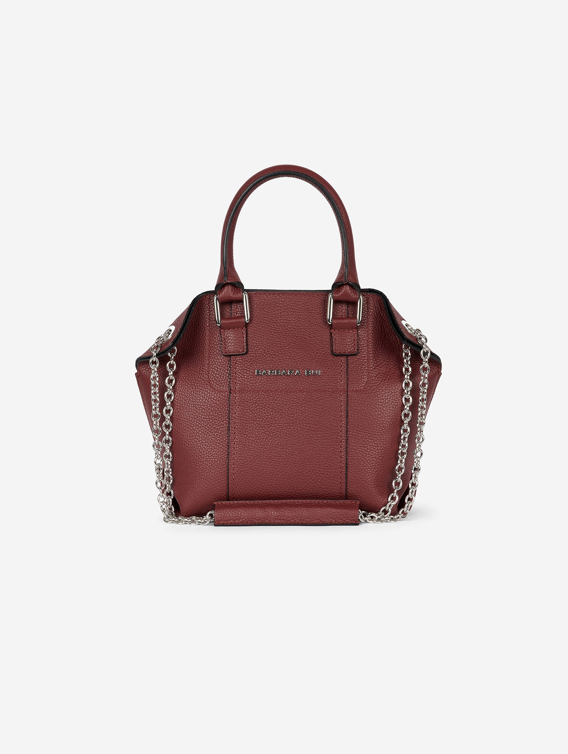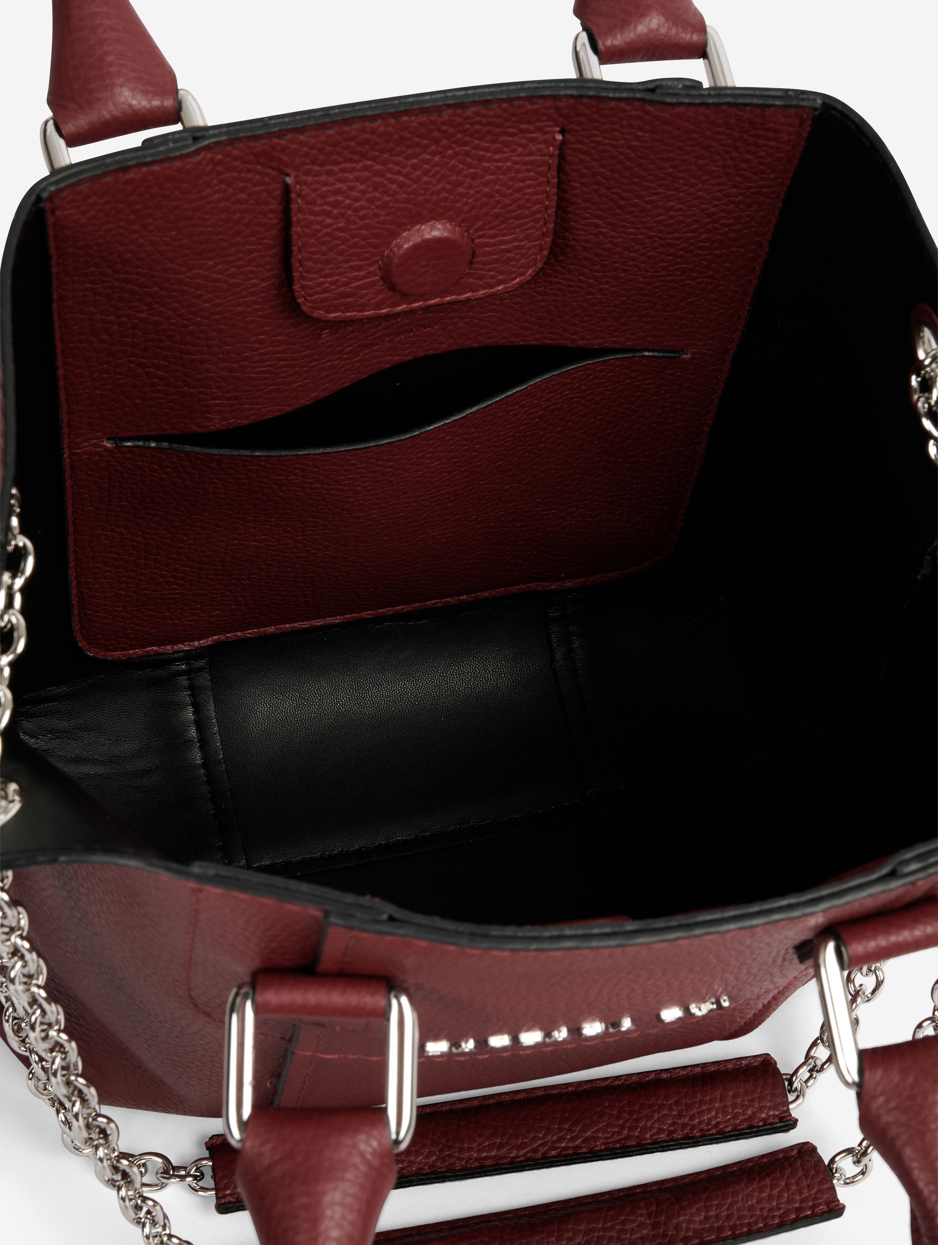 "LITTLE CHAMALLOW" small tote bag in burgundy grained calfskin laminated to its reversible-effect lining. Articulated hand-carry handles and sliding chain shoulder strap for either short double chain or long single chain shoulder carrying. Inside patch pocket and central magnetic closure.