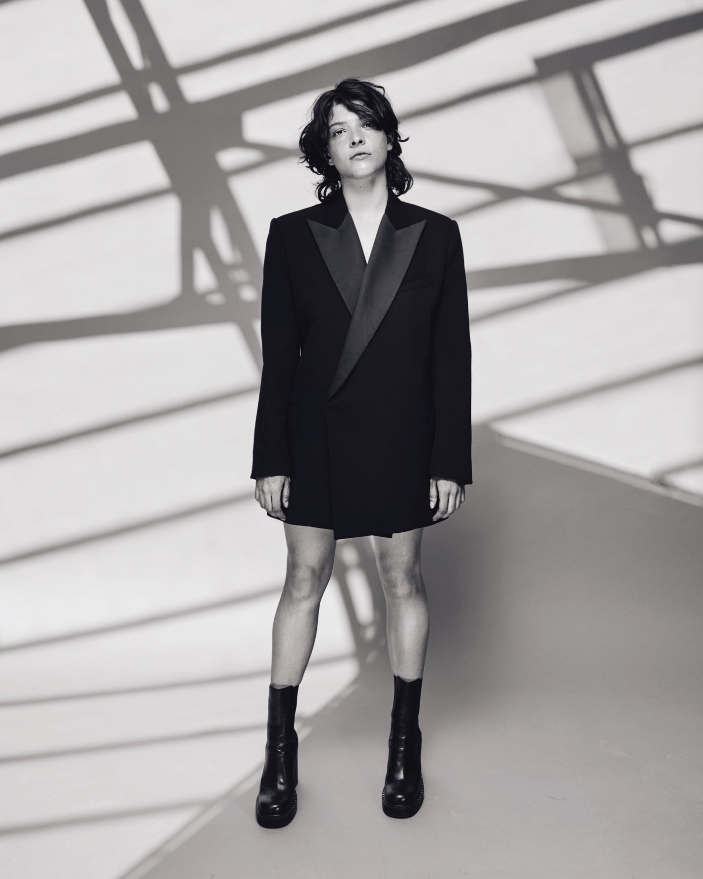 J’AIME CETTE VESTE CAR ELLE A UN CÔTÉ TRÈS FÉMININ ET MASCULIN EN MÊME TEMPS. JE ME RETROUVE DANS ÇA, CAR JE TROUVE QUE DANS TOUTES LES FEMMES IL Y A UN PEU DE MASCULINITÉ, UN TRUC UN PEU FORT. IL Y A AUSSI DE TRÈS BELLES COULEURS DANS LE VESTIAIRE DE BARBARABUIET JE TROUVE ÇA COOL PARCE QUE C’EST OSÉ.