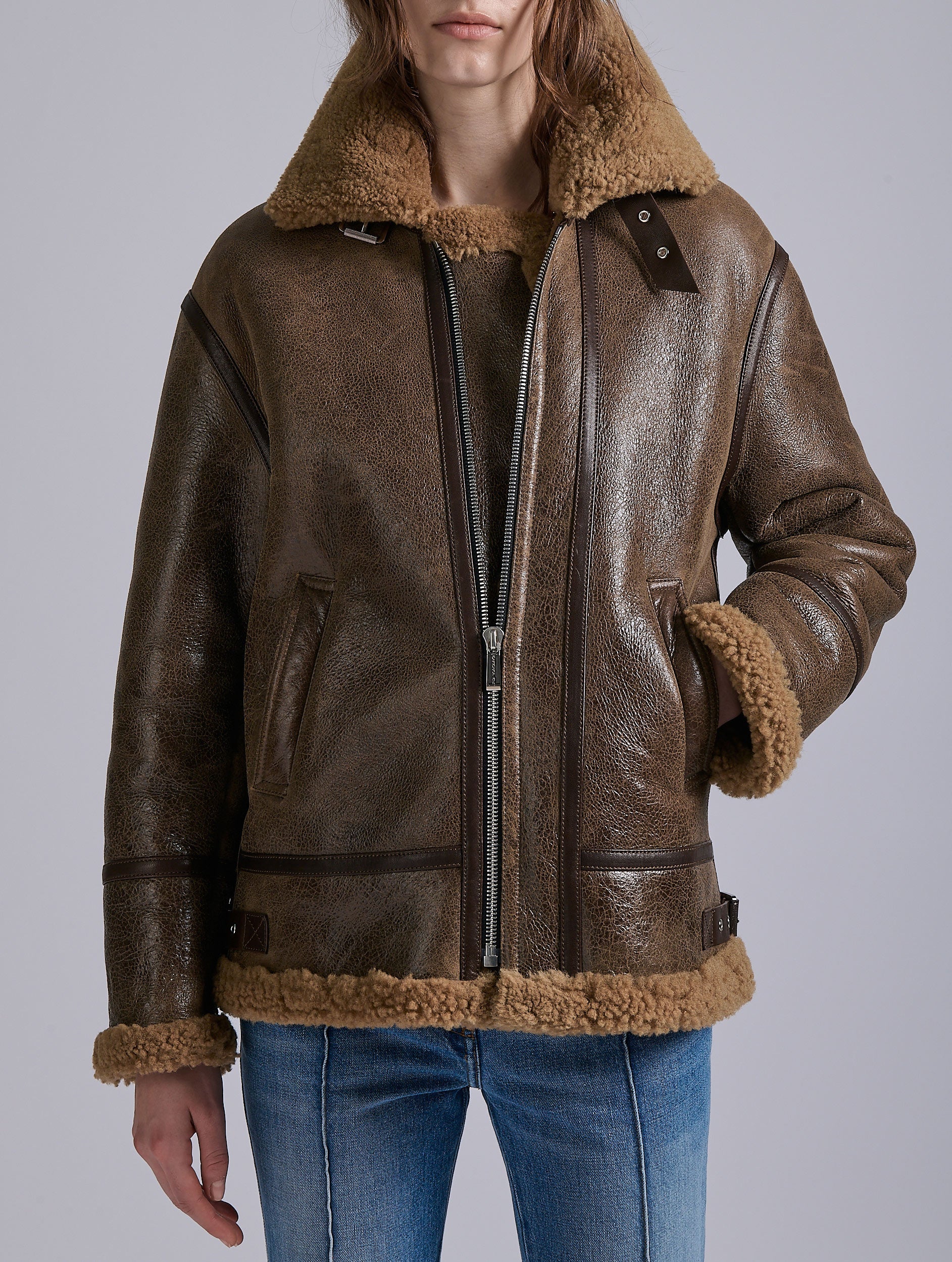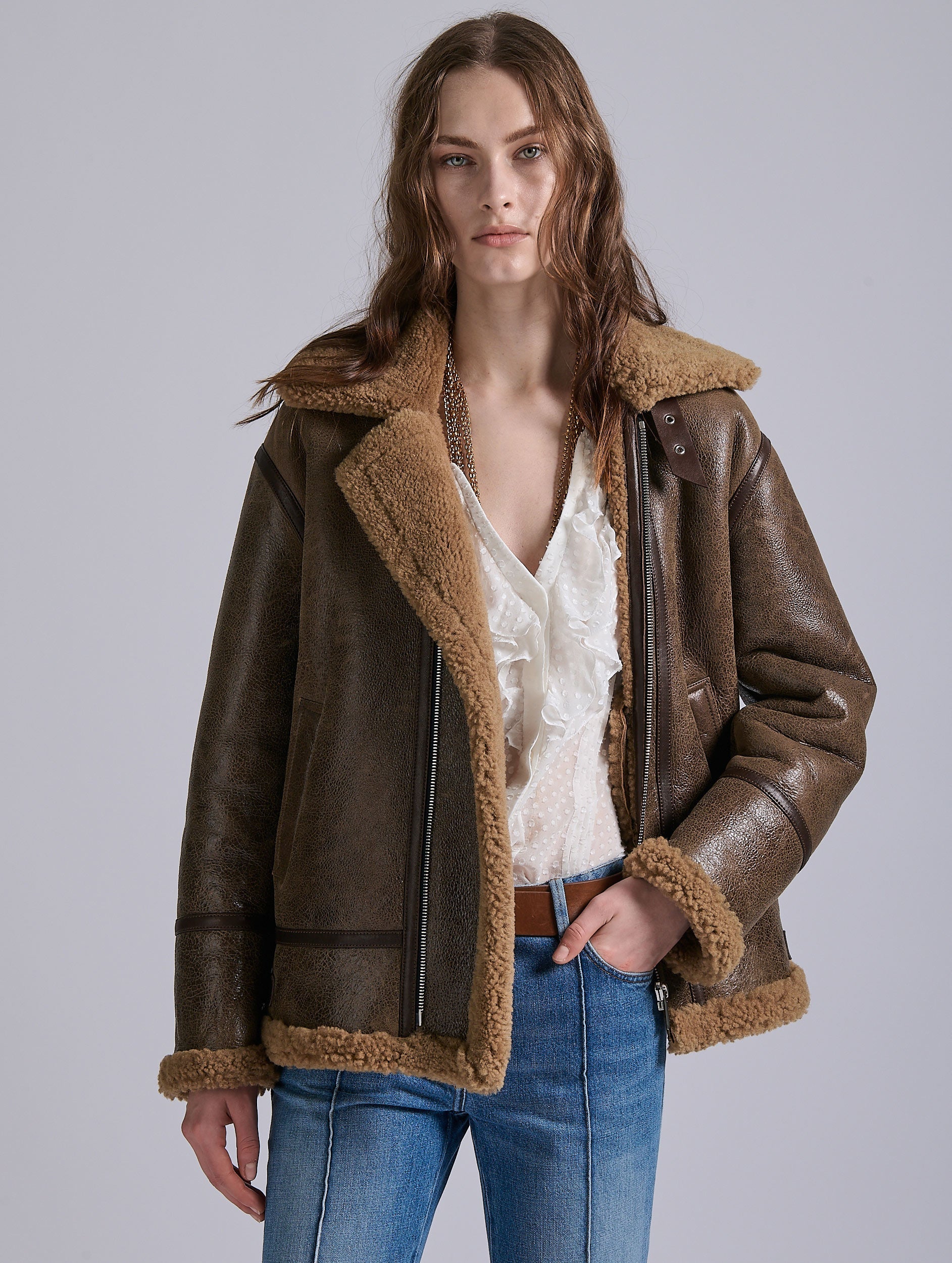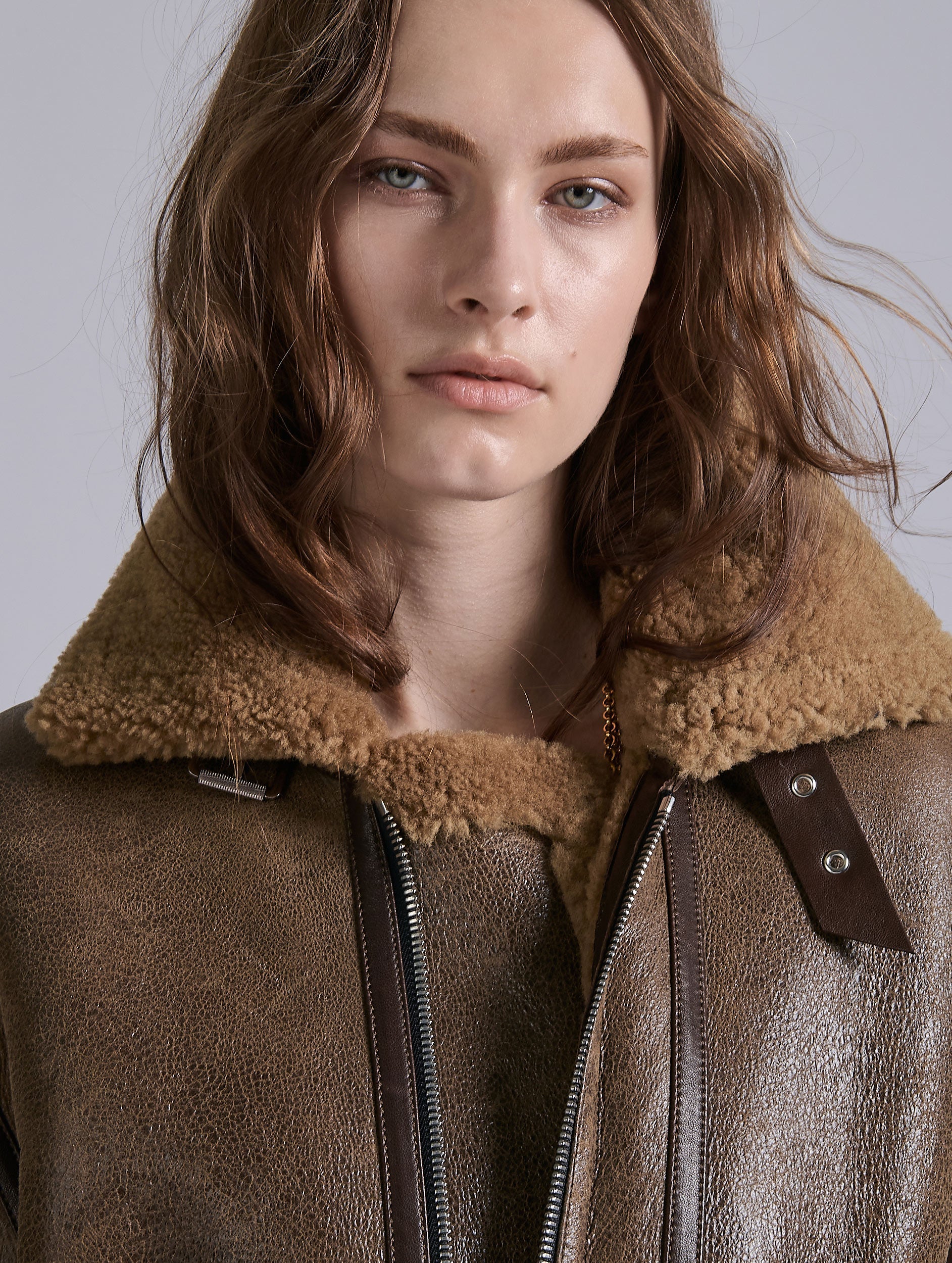 Blouson en peau lainée marron