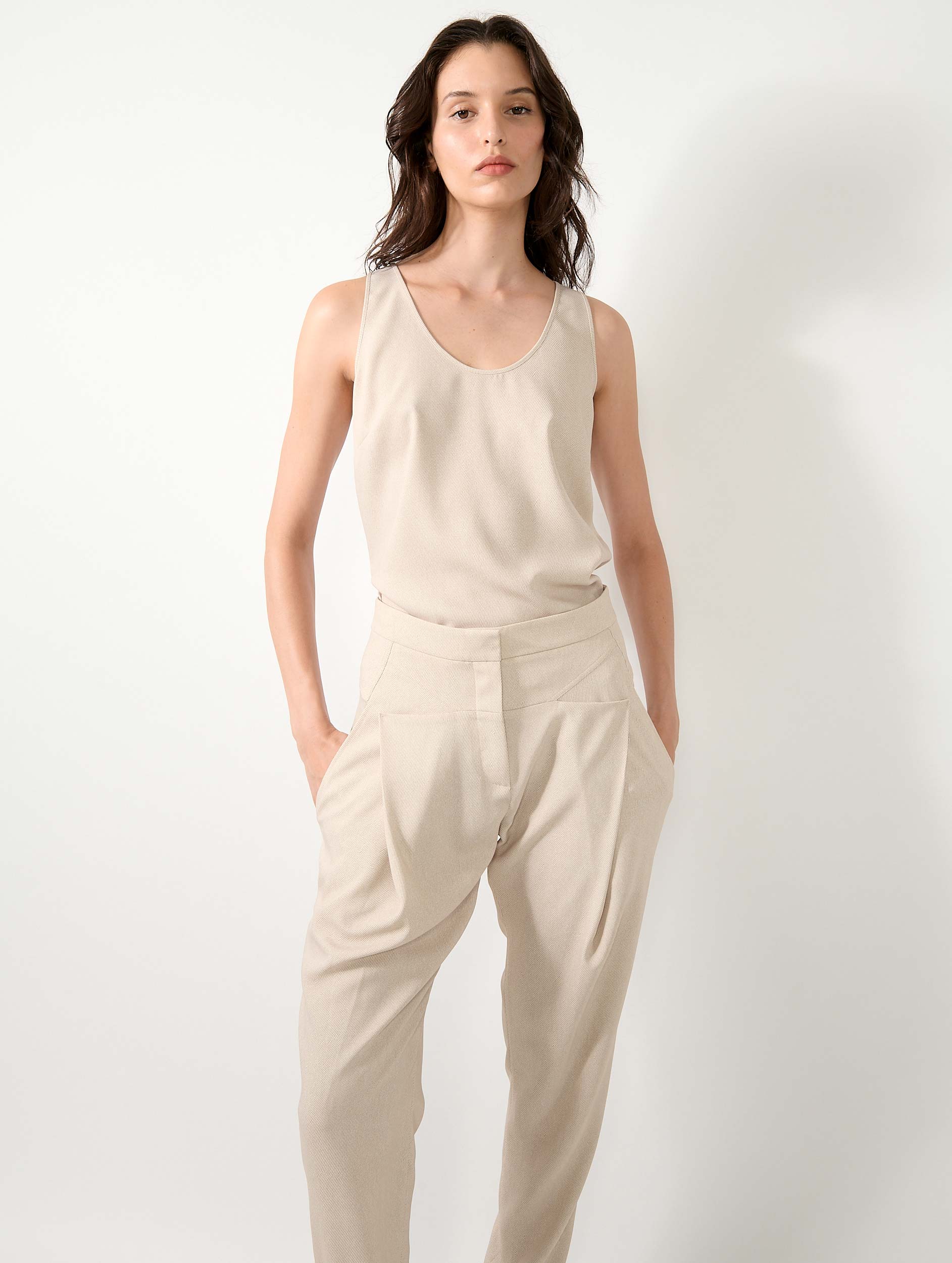 Débardeur en crêpe imprimé sable