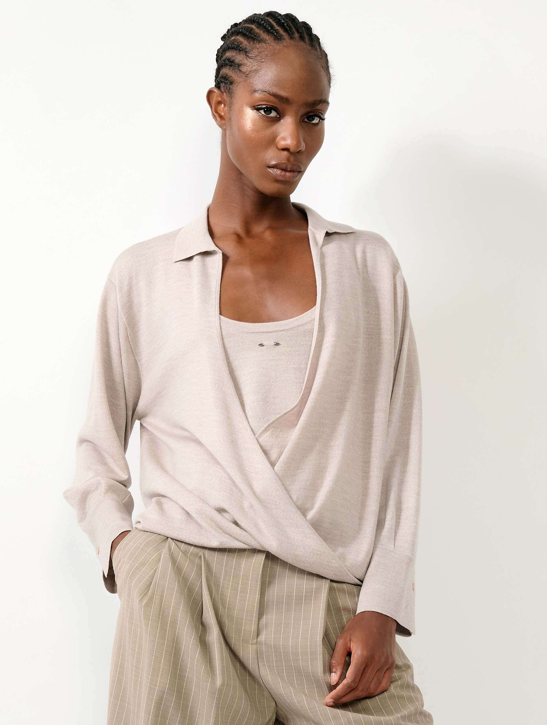 Pull cache-cœur en laine et soie extrafine sableSKU:H4201XXA_41