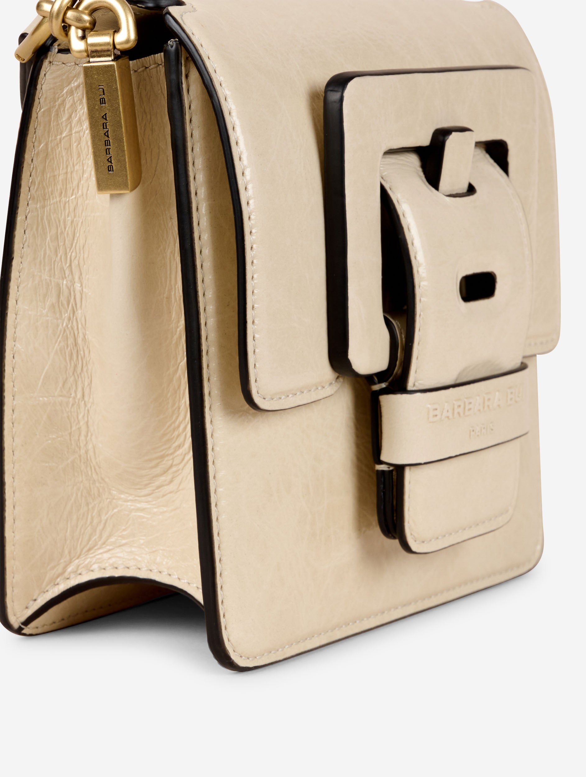 Sac "LOVE ME" en cuir verni naplak ivoire. Fine et longue bandoulière de 120 cm pour le porter croisé. Maxi boucle décorative en cuir renforcé sur le rabat à fermoir magnétique. Poche avant, poche dos idéale pour garder son smartphone sous la main, et poche intérieure passepoilée. Hauteur 16 cm / Longueur : 16 cm / Profondeur 6,5 cm.