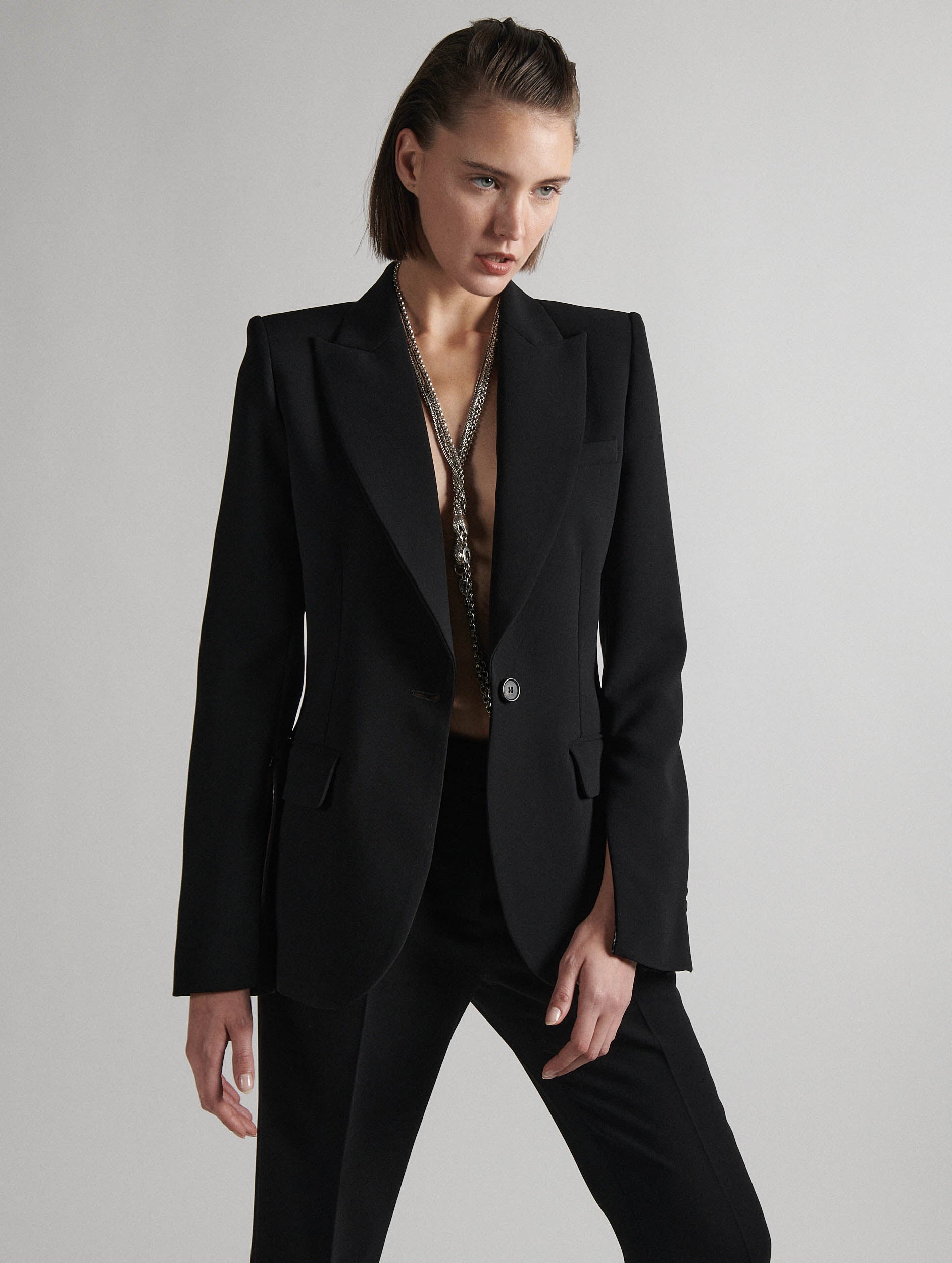 Veste de costume cintrée en crêpe noirSKU:E1200EEA_10