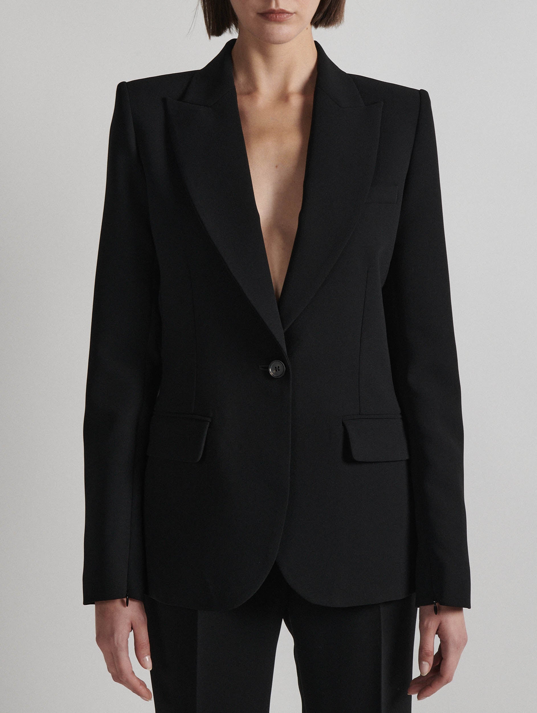 Veste de costume cintrée en crêpe noir