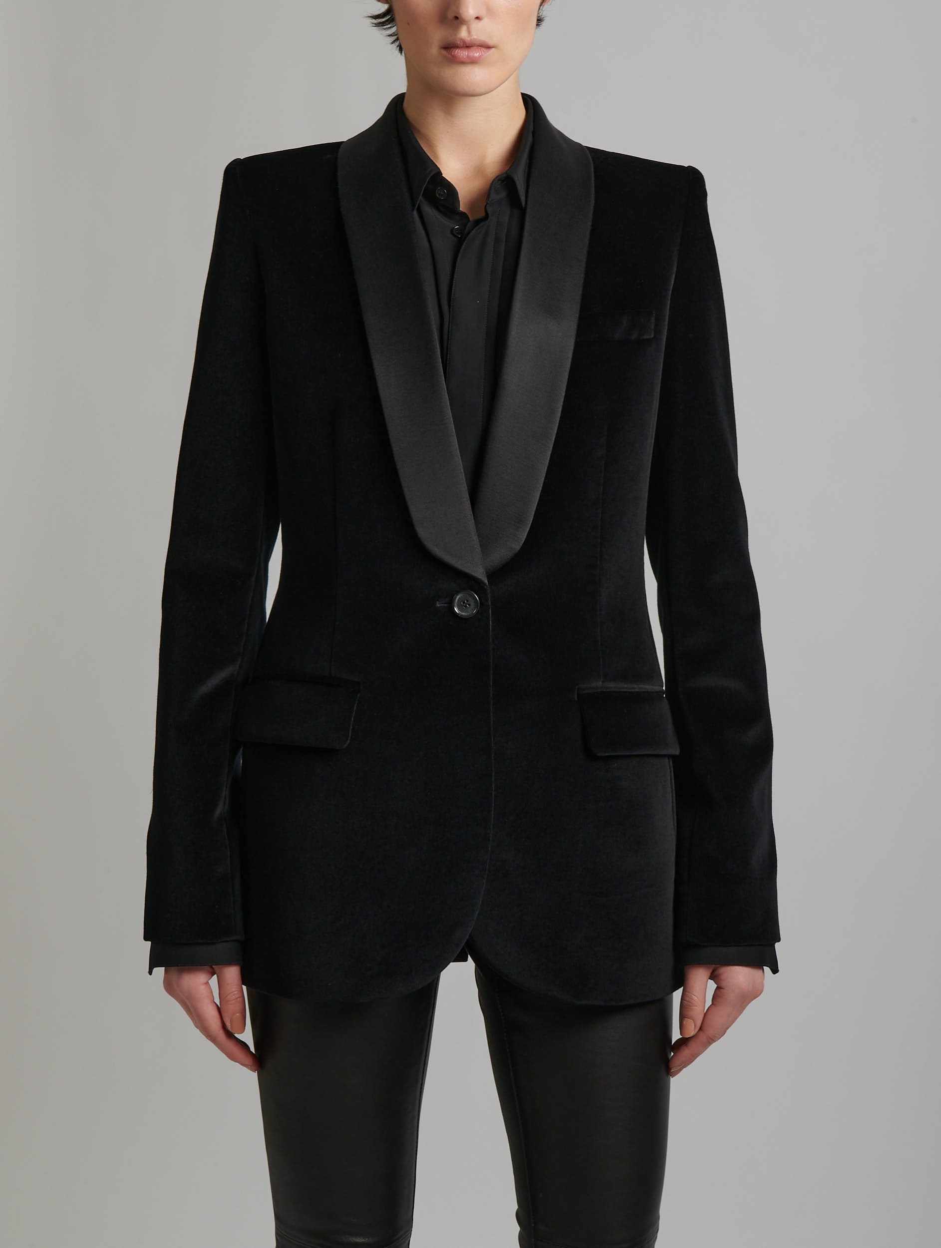 Veste de smoking à col châle en velours noirSKU:E1205EHK_1010